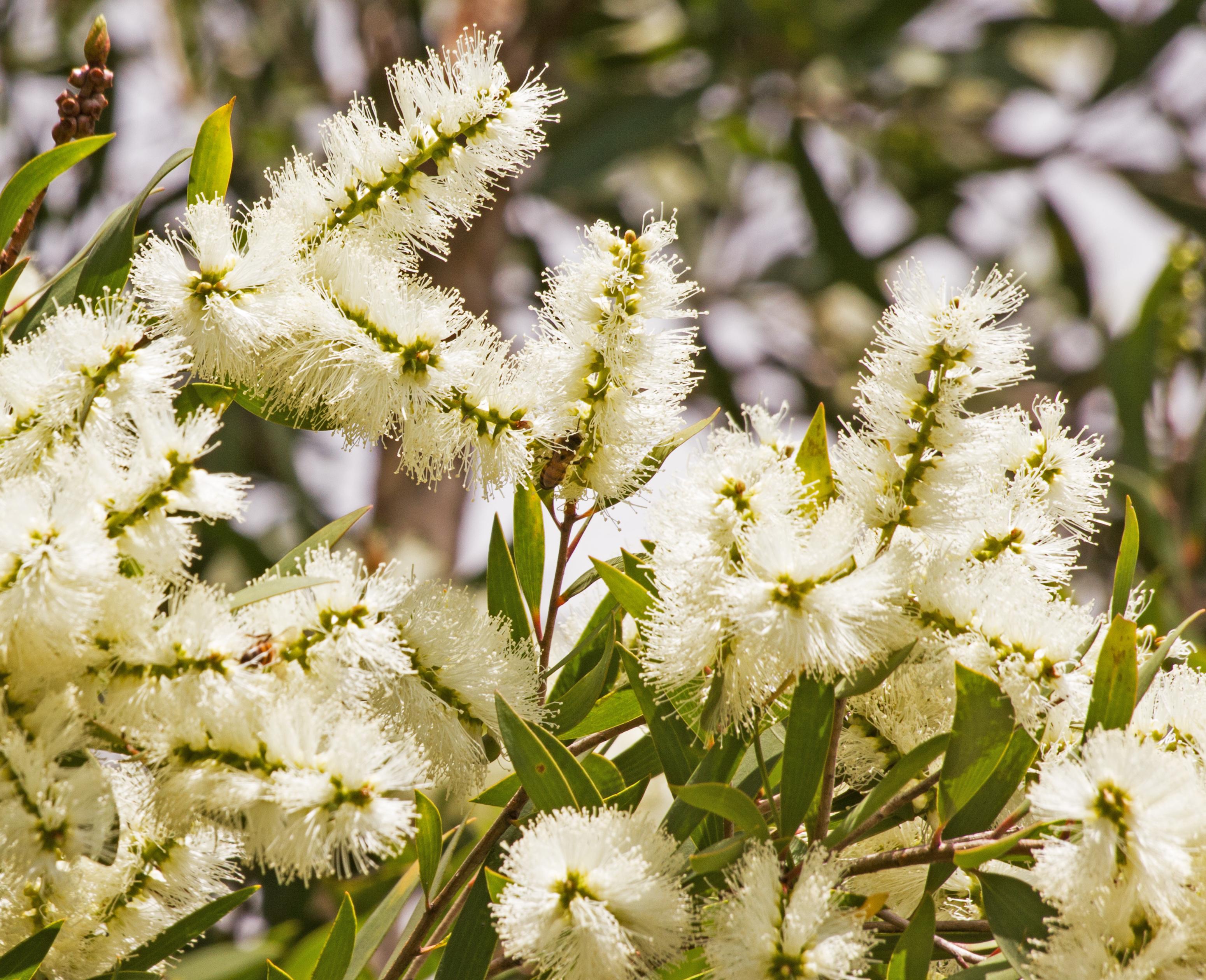 オーストラリア東部沿岸部原産。アメリカにも帰化している。花から風味の強い蜜が取れ、飲料にもされる。オイルは防腐や抗菌として忌避剤や化粧品にも利用される。