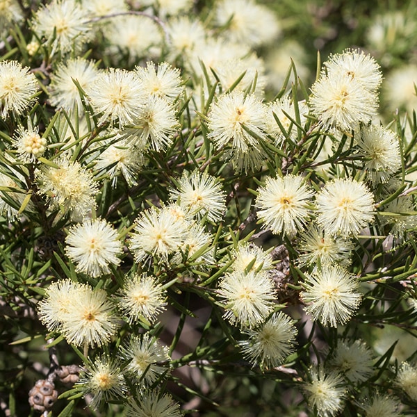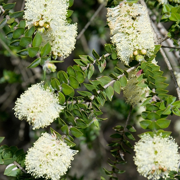 オーストラリア東部、タスマニアの固有種。香りの良いクリーム色のブラシ状の花が咲き、5cm程の長さになる。